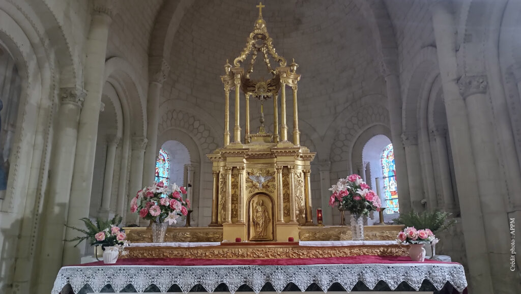 C’est une crypte à voute nervurée de style roman dont la voute repose sur 4 branches d’ogives. Sur la table recouverte de l’ardoise d’origine que l’on pourrait appeler pupitre, on chantait l’évangile de la passion le jour des Rameaux et le curé donnait l’absolution le jour des Défunts le 2 novembre.